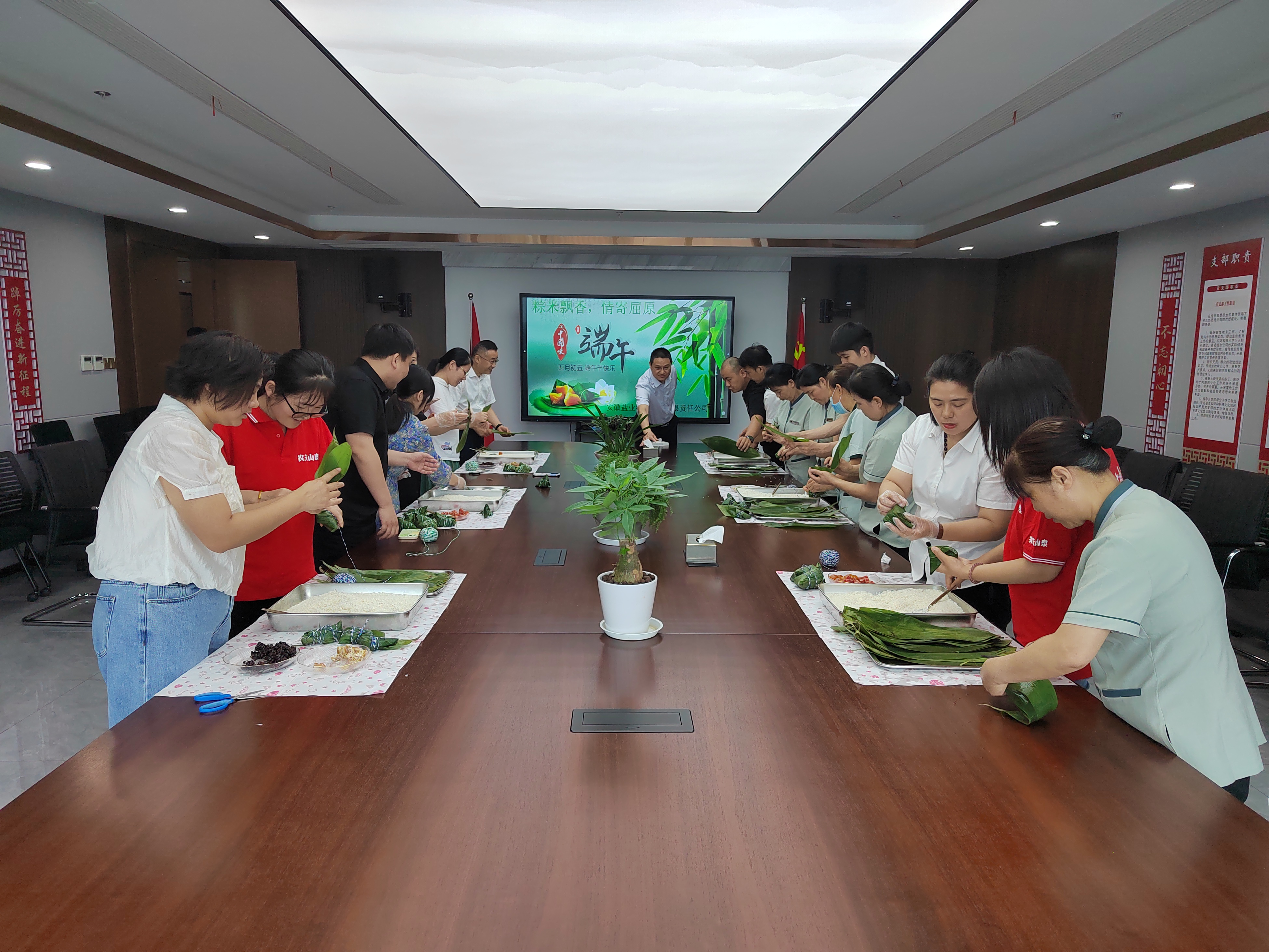 為弘揚傳統文化,傳承文化習俗。6月5日上午,酒店管理公司在徽鹽安徽中心組織物業公司、入駐商戶開展了“粽米飄香,情寄屈原”端午節包粽子活動。