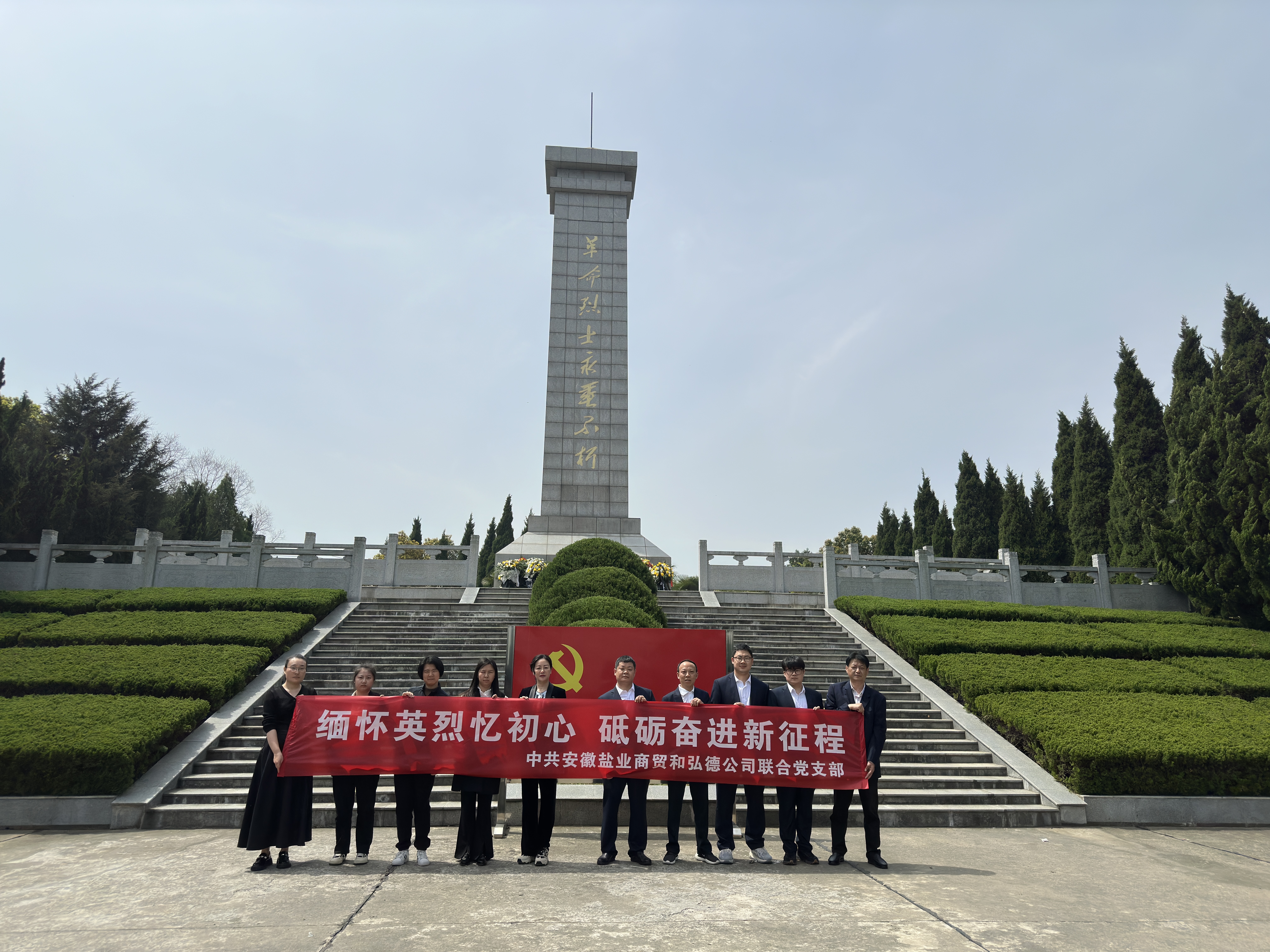 4月1日上午,中共安徽鹽業商貿和弘德公司聯合黨支部黨員干部到巢湖南山烈士陵園開展主題為“緬懷英烈憶初心 砥礪奮進新征程”的清明祭掃主題黨日活動,追尋紅色記憶,接受思想洗禮。