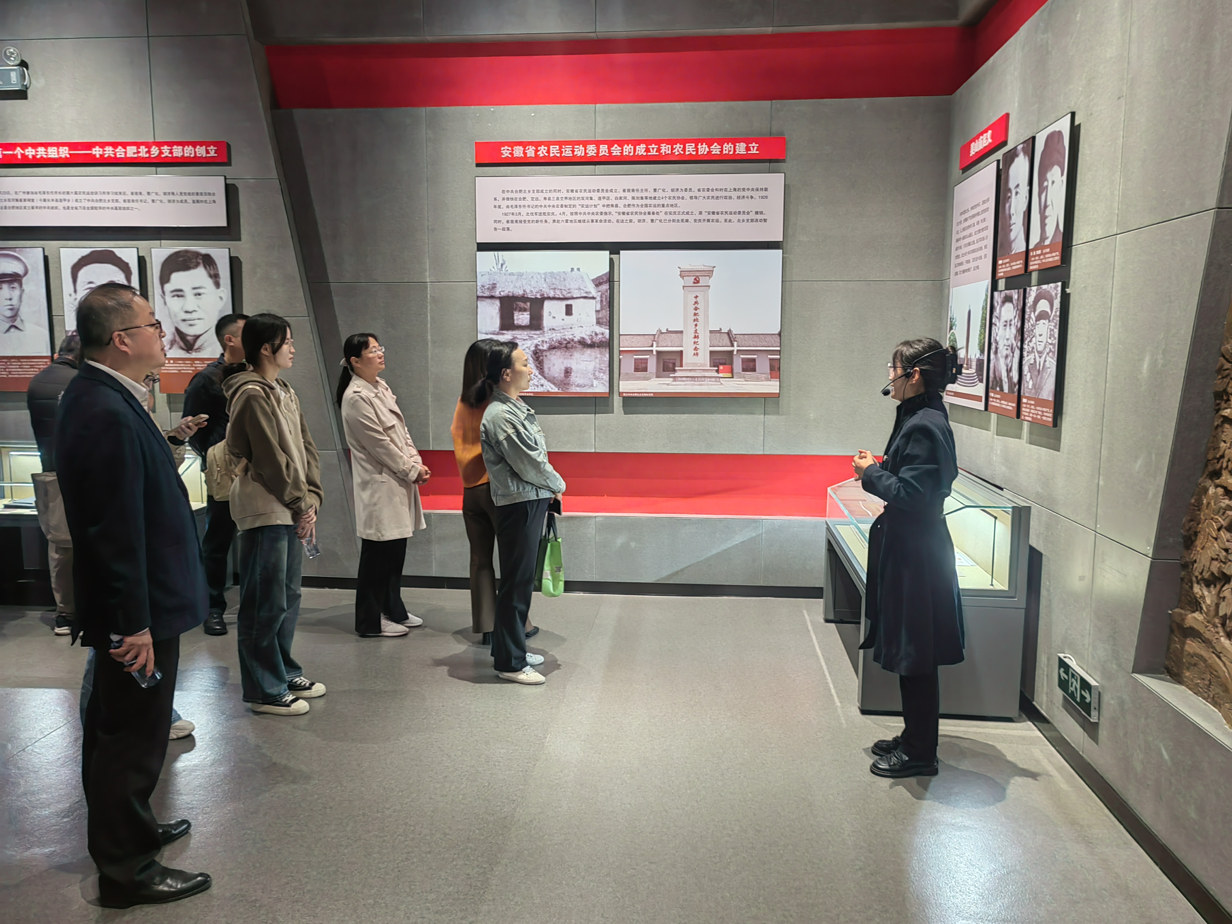 活動中,大家一起參觀了中國共產黨合肥歷史館、新四軍第四支隊東進抗日紀念館,展館中珍貴的歷史圖片、斑駁的抗戰文物、生動的場景雕塑將大家帶回到那個艱苦卓絕的崢嶸歲月。隨后大家瀏覽了館中新青年、大革命時期、土地革命時期到社會主義現代化各個時期展出的檔案文獻、圖文展板等,對崔筱齋、馬毛姐等合肥發展史上近百位重要人物以及北鄉支部創建到整體推進合肥現代化城市建設等重大事件進行瞻仰學習,切身感受了合肥百年來發生的翻天覆地的變化。