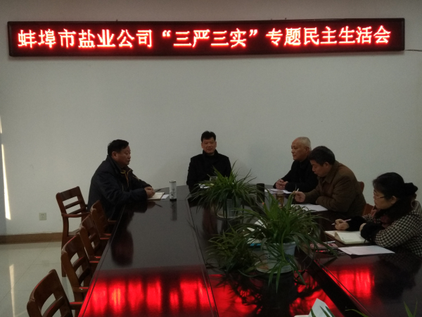 12月30日上午,按照省總公司黨委統一部署要求,蚌埠市公司黨委召開“三嚴三實”專題民主生活會,公司黨委書記邱軍主持會議,領導班子全體成員參加會議,公司紀委委員列席會議。
