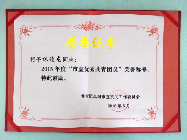 日前,阜陽市鹽務(wù)局鹽政科稽查隊員林曉龍被共青團阜陽市委授予“2015年度市直優(yōu)秀共青團員”榮譽稱號。