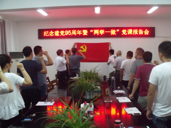 6月29日,蚌埠市公司黨委舉行了紀念建黨95周年暨“兩學一做”黨課報告會。會上,紀委書記王新進首先帶領全體黨員進行集體宣誓,重溫入黨誓詞。宣誓完畢,黨委書記邱軍給全體黨員作了題為《舉起右拳,面對鮮紅黨旗》的專題黨課,通過學習重溫建黨以來入黨誓詞的變化,使廣大黨員更加深刻理解了入黨誓詞是《中國共產黨章程》的重要內容,是黨員入黨時對黨和人民作出的莊嚴政治承諾,是黨員為黨奮斗終生、獻身黨的事業的誓言和座右銘的重要歷史和現實意義。邱軍要求每一位黨員要宣讀誓詞、牢記誓詞、維護誓詞、踐行誓詞,增強黨員意識,恪守承諾,守規履責,在思想、政治、行動上做一名真正合格的黨員,立足崗位,充分發揮先鋒模范作用。