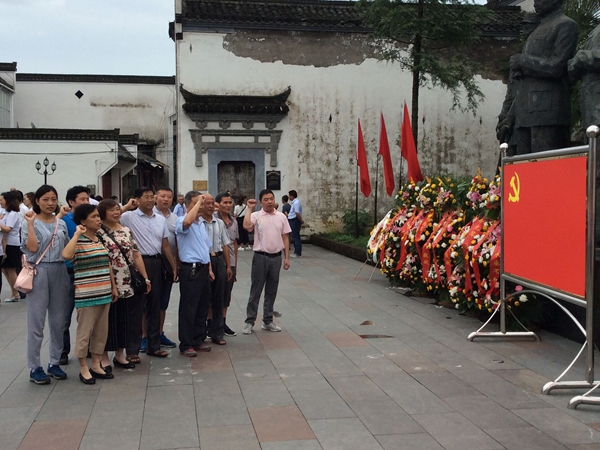 7月1日上午,在中國共產黨建黨95周年之際,績溪縣公司全體黨員及入黨積極分子在新四軍整編地、東進抗日出征地─巖寺─新四軍軍部舊址紀念館前,緬懷革命先烈,開展集體莊嚴宣誓,共同慶祝黨的生日。