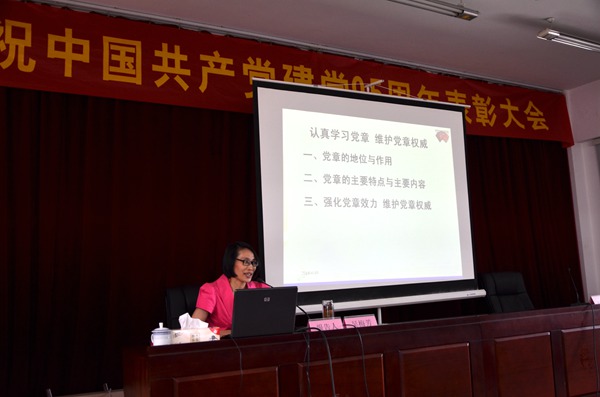 吳梅芳教授為大家作了題為“認真學習黨章、維護黨章權威”的專題黨課。她從黨章的地位和作用、黨章的主要特點與主要內容以及強化黨章效力、維護黨章權威等方面詳細解讀了黨章的總綱、條文內容與邏輯結構。她用樸實的言語、典型的事例全面系統的解讀了黨章的地位和作用、黨章主要特點和主要內容,詮釋了認真學習黨章、嚴格遵守黨章的重要性,闡述了強化黨章效力、維護黨章權威的現實意義。