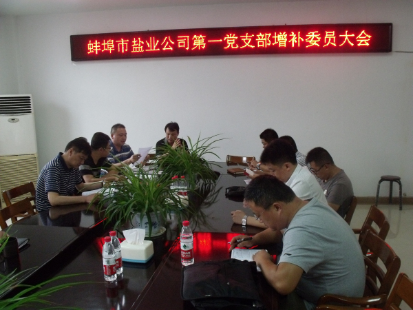 大會由黨支部書記常學同志主持,會議宣讀了公司黨委《關于同意中共安徽省蚌埠市鹽業有限公司(局)第一黨支部補選支委的批復》,按照會議議程和選舉程序,通過無記名差額選舉的方式,選舉增補了新的支部委員,并就支部工作進行了分工。