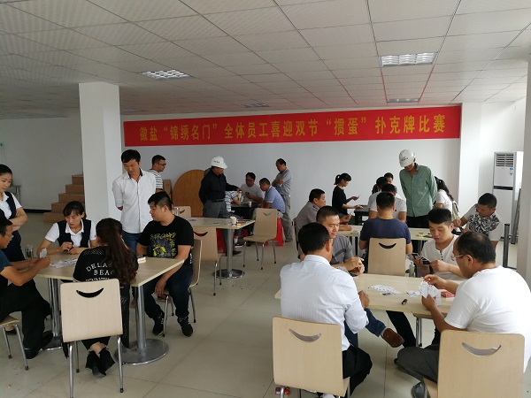 為迎接即將到來的中秋和國慶佳節,同時加強公司各部門之間的聯系,方便日常工作的順利開展,活躍公司內部員工工作氣氛,激發公司員工的工作熱情。9月21日,“徽鹽•錦繡名門”項目公司食堂熱鬧非凡,公司各部門員工共同參加喜迎雙節“摜蛋”撲克牌比賽。