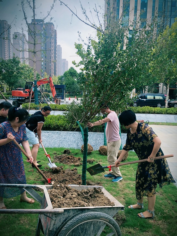 上午9時許,全體黨員準(zhǔn)時來到徽鹽世紀(jì)廣場商辦樓前,開始植樹活動。活動現(xiàn)場,黨員們不顧天氣炎熱,相互協(xié)作,配合默契,展現(xiàn)出一片熱火朝天的勞動場景。搬運(yùn)樹苗、揮鍬挖坑、填土栽種……經(jīng)過1個多小時的努力,六株蔥郁的紫薇屹立于商辦樓前,為徽鹽世紀(jì)廣場增添了一道亮麗的風(fēng)景。隨后,大家還小心翼翼地在樹上系上“機(jī)關(guān)第一黨支部種植”的銘牌,以此要求全體黨員養(yǎng)護(hù)好這些樹木,號召大家自覺養(yǎng)成植綠護(hù)綠的良好習(xí)慣。