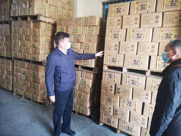 邱軍一行還現(xiàn)場了解了各公司鹽品、非鹽產(chǎn)品庫存及銷售情況,查看了省級食鹽儲備情況以及淮南市公司食鹽儲備庫項目建設進展情況。