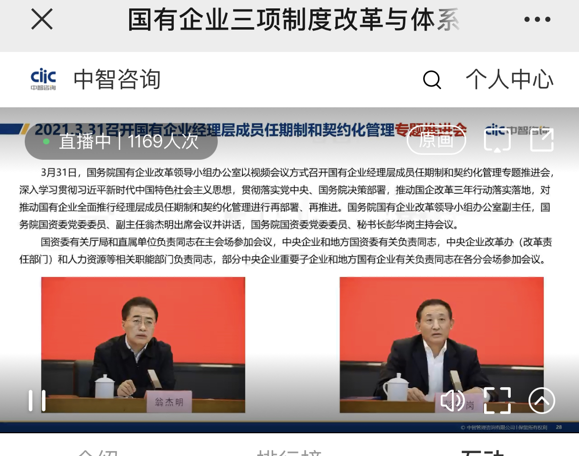 為進(jìn)一步推動(dòng)省鹽業(yè)集團(tuán)落實(shí)國(guó)企改革三年行動(dòng)工作縱深推進(jìn),做好全面實(shí)施和深化評(píng)估階段各項(xiàng)工作,8月9日下午,省鹽業(yè)集團(tuán)采取線上培訓(xùn)形式召開(kāi)了“2021年第二期國(guó)企改革三年行動(dòng)專(zhuān)題培訓(xùn)”。此次培訓(xùn)邀請(qǐng)中智管理咨詢(xún)公司的國(guó)企改革領(lǐng)域?qū)<疫M(jìn)行授課,集團(tuán)公司和各級(jí)子公司累計(jì)共1400余人次參加培訓(xùn)。