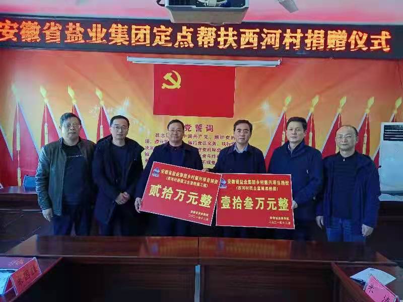 12月23日,省鹽業集團黨委副書記、總經理王思軍,黨委委員、副總經理楊曉彬等一行前往集團定點幫扶的潛山市塔畈鄉西河村開展鄉村振興工作調研,并舉辦幫扶捐贈活動。