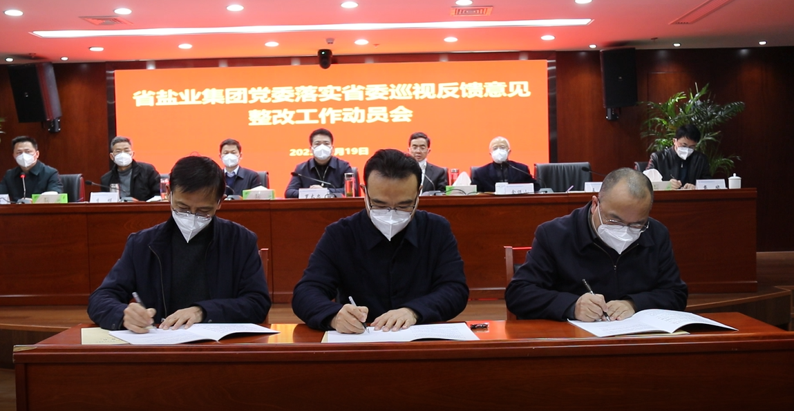 會(huì)議集中學(xué)習(xí)了習(xí)近平總書(shū)記關(guān)于巡視工作的重要論述,傳達(dá)了鄭柵潔書(shū)記在省委書(shū)記專題會(huì)上關(guān)于巡視整改工作的部署要求,學(xué)習(xí)了省委辦公廳《關(guān)于進(jìn)一步加強(qiáng)和改進(jìn)巡視整改工作意見(jiàn)的通知》和《關(guān)于加強(qiáng)省委巡視整改和成果運(yùn)用的若干措施》,解讀了《省鹽業(yè)集團(tuán)黨委關(guān)于健全工作機(jī)制推進(jìn)省委巡視整改落實(shí)的通知》和省鹽業(yè)集團(tuán)黨委落實(shí)巡視反饋意見(jiàn)整改、紀(jì)委落實(shí)巡視反饋意見(jiàn)整改、干部選拔任用專項(xiàng)檢查意見(jiàn)整改、意識(shí)形態(tài)工作專項(xiàng)檢查意見(jiàn)整改、巡察工作專項(xiàng)檢查意見(jiàn)整改的實(shí)施方案,各二級(jí)單位、本部各部門(mén)簽訂了“一對(duì)一”《整改任務(wù)書(shū)》,順朝公司、集團(tuán)公司運(yùn)營(yíng)管理部作了巡視整改表態(tài)發(fā)言。