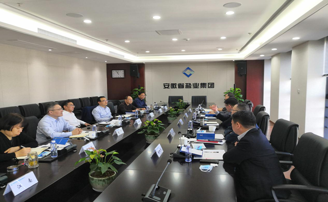 王思軍對趙玉祥一行的到來表示歡迎,重點介紹了省鹽業集團近年來的經營情況、業務板塊布局、轉型發展及未來戰略規劃。王思軍指出,省鹽業集團近年來順應鹽業體制改革,堅定轉型發展不動搖,在做好傳統主業的基礎上,積極布局生態環保、城市更新、健康養老產業,為安徽鹽業可持續、高質量發展夯實基礎。