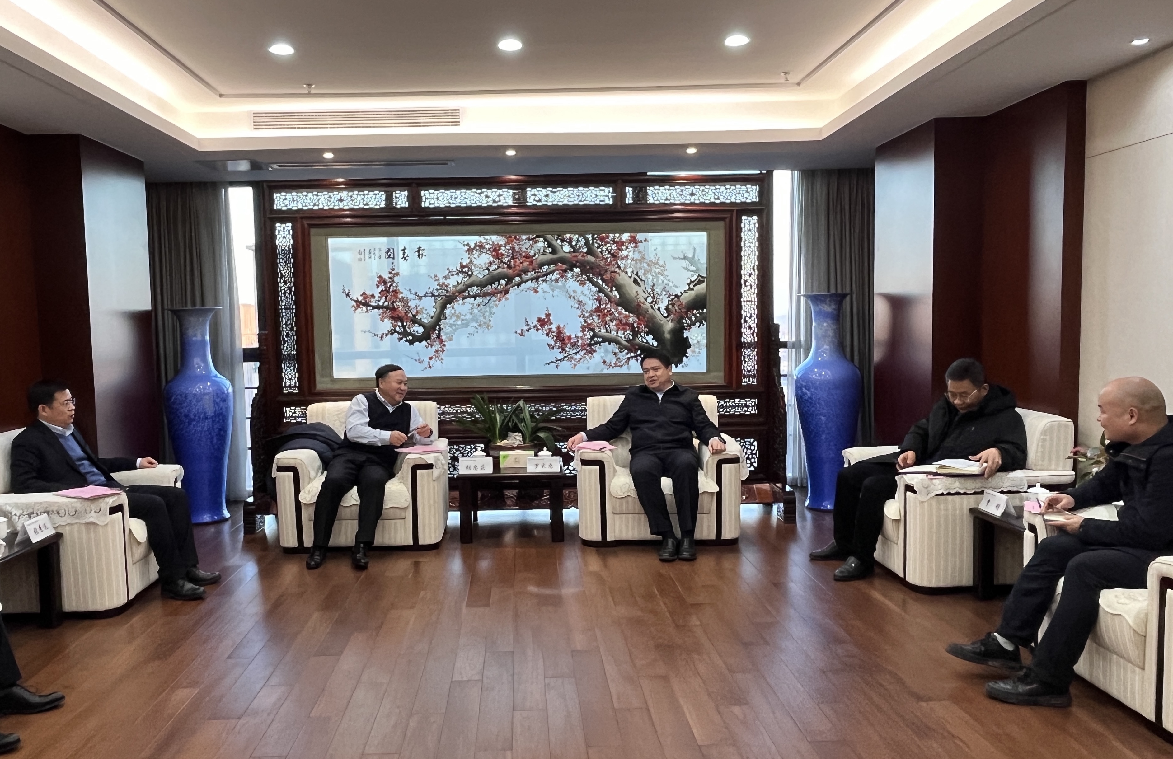 1月23日,省生態環境集團黨委書記、董事長羅太忠會見合肥科技農村商業銀行黨委書記、董事長胡忠慶,雙方就深化銀企合作、共謀發展開展座談交流。