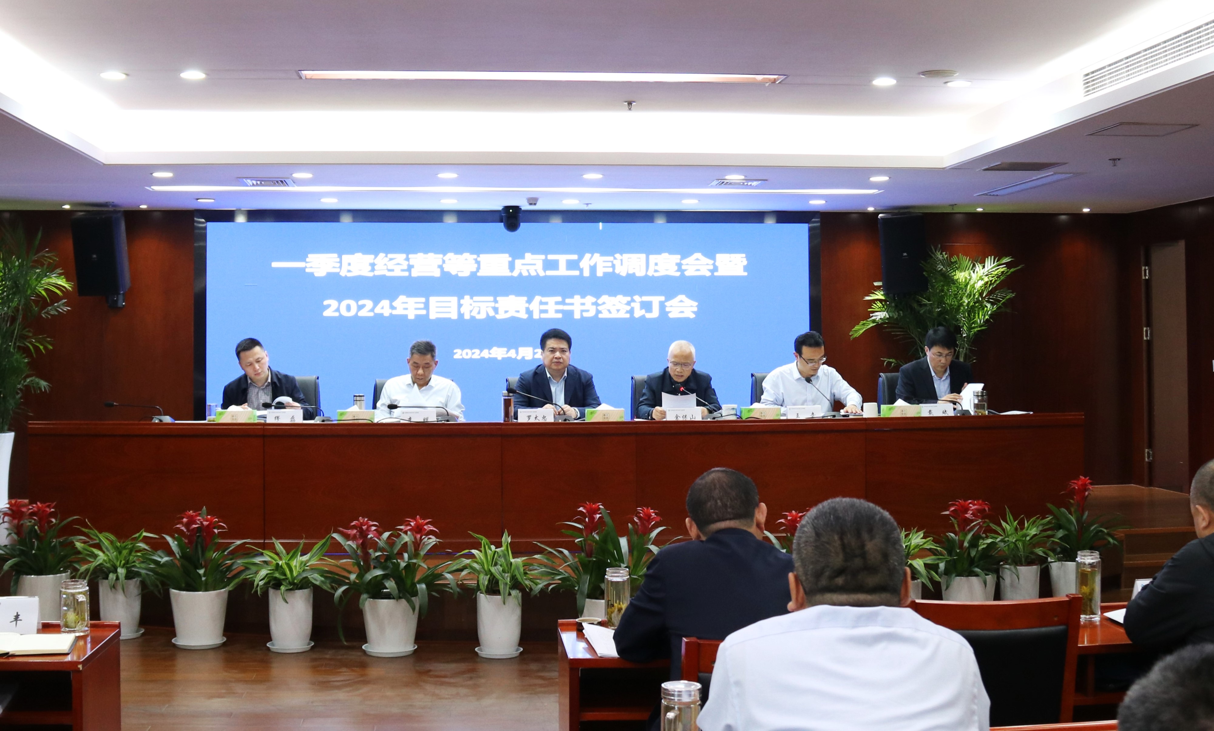 4月23日,集團召開一季度經營等重點工作調度會暨2024年目標責任書簽訂會。集團黨委書記、董事長羅太忠出席會議并講話,集團黨委委員、副總經理王奇主持會議。
