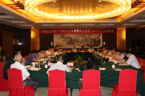 5月25日下午,徽鹽地產(chǎn)2015年度股東大會暨第三屆董事會第二十二次會議在合肥梅山飯店隆重召開。徽鹽地產(chǎn)全部19家股東代表、全體董事、監(jiān)事及公司經(jīng)營班子全體成員出席會議。省公司總經(jīng)理、徽鹽地產(chǎn)董事長詹先豪主持大會,省公司副總經(jīng)理、徽鹽地產(chǎn)董事楊曉彬代表領(lǐng)導(dǎo)班子作工作報告。