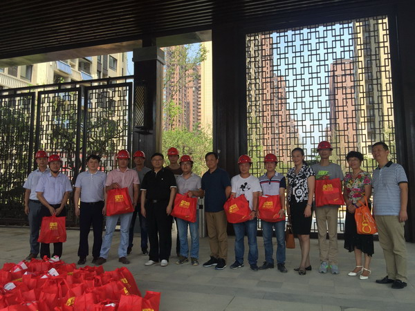 7月27日下午,省直工委副書記郭德成一行在省總公司副總經理楊曉彬、組群處和安鹽地產公司工會負責人的陪同下,來到徽鹽地產徽鹽世紀廣場項目現場,為在烈日下作業的員工送去了防暑用品和防暑關懷。