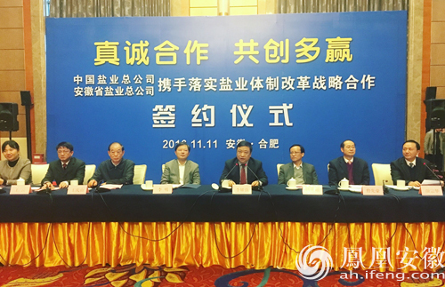 2016年11月11日,安徽省鹽業(yè)總公司與中國(guó)鹽業(yè)總公司在合肥簽署戰(zhàn)略合作協(xié)議。安徽省國(guó)資委、經(jīng)信委等部門(mén)領(lǐng)導(dǎo),中國(guó)鹽業(yè)總公司黨委書(shū)記、董事長(zhǎng)李耀強(qiáng),安徽省鹽業(yè)總公司黨委書(shū)記、總經(jīng)理詹先豪等領(lǐng)導(dǎo)共同出席簽約儀式。中國(guó)鹽業(yè)總公司所屬中鹽上海、中鹽安徽、中鹽長(zhǎng)江、中鹽金壇、中鹽新干、中鹽舞陽(yáng)等二級(jí)企業(yè)主要領(lǐng)導(dǎo)也共同參與了此次活動(dòng)。