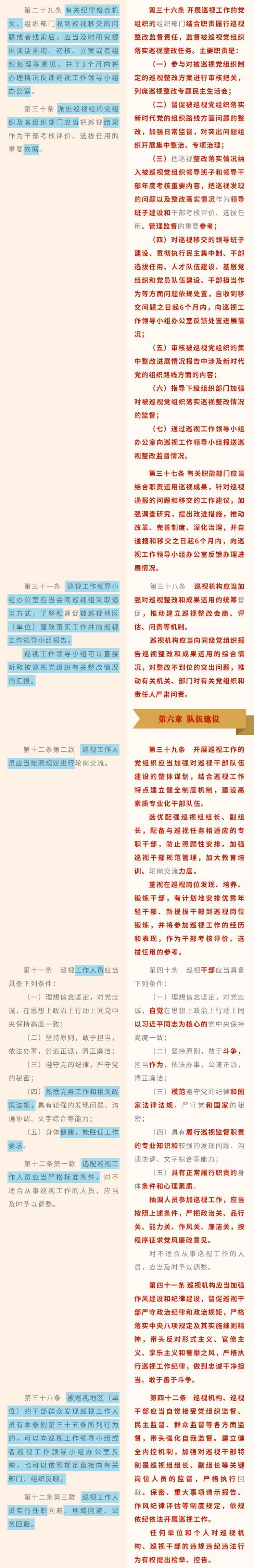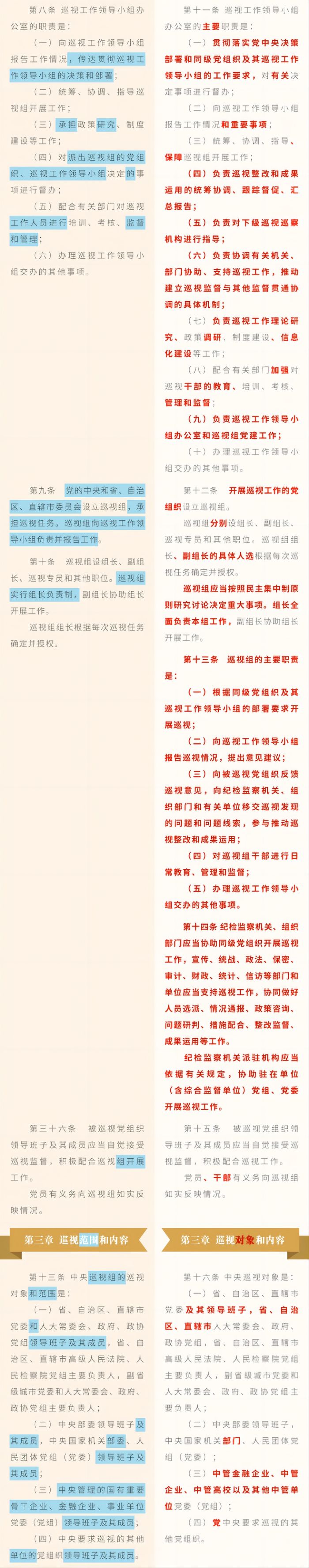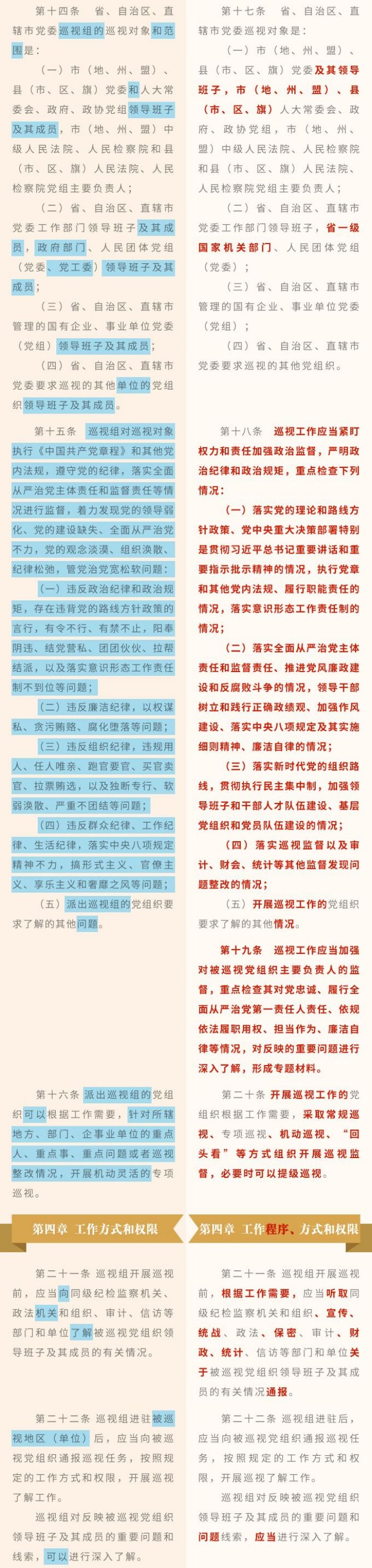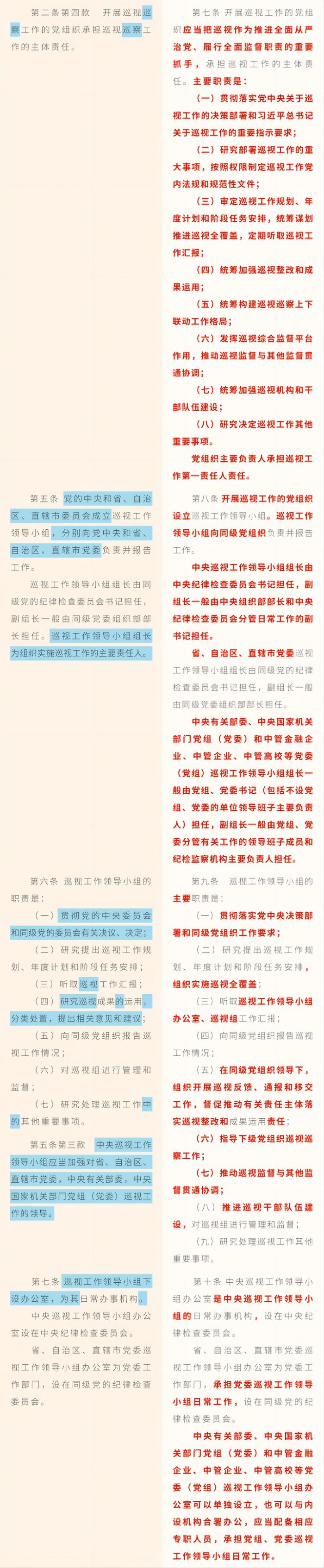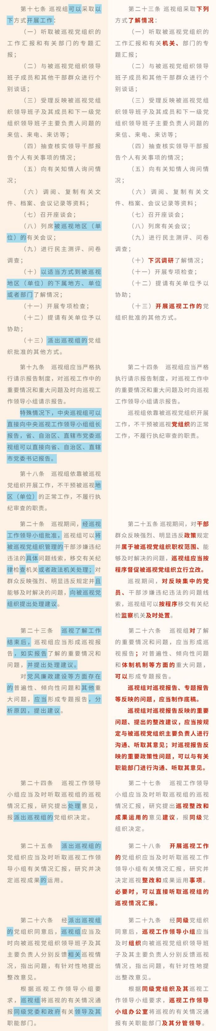 《中國共產黨巡視工作條例》修訂條文對照表