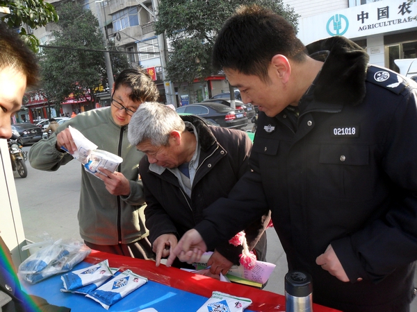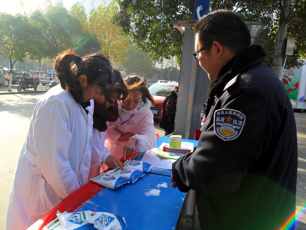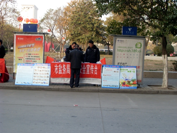 在本次活動中,阜陽市局設立宣傳咨詢臺,宣傳展架4個,擺放精心準備的宣傳資料和傳單,展示近期在市場查獲得各類假冒鹽品,現場接受市民咨詢散發宣傳單300余份,向群眾宣傳普及鹽業法規,并推出了現場教市民辨別真假碘鹽的活動,咨詢臺前觀看宣傳圖版和前來咨詢的群眾絡繹不絕,廣大市民對國家為確保民生,食鹽專營的政策深表理解和支持。市領導對宣傳點進行慰問檢查時,對阜陽市的鹽政管理給予了充分肯定和認可,并鼓勵大家再接再厲再創佳績。