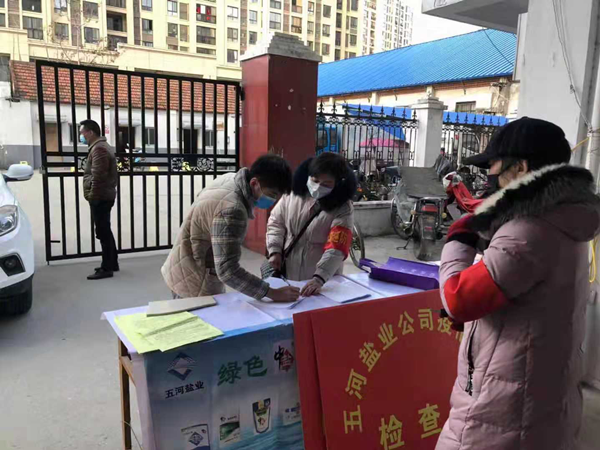 五河公司在保障食鹽安全供應的同時,還肩負社區疫情防控社會管理責任,為當地政府分擔解憂。疫情期間,黨支部書記、經理薛寶成與其他巡查人員一起,對公司2個宿舍樓90余戶進行24小時疫情防控及入戶巡查,至2月12日已堅守疫情防控崗位13天,下一步還將繼續依照縣政府的要求,繼續做好疫情防控工作。對于其中的辛苦,他們從不多言,用他們的默默奉獻與堅守,扛起國有企業的責任與擔當,并且大家都有信心、有能力打贏這場疫情防控阻擊戰。
