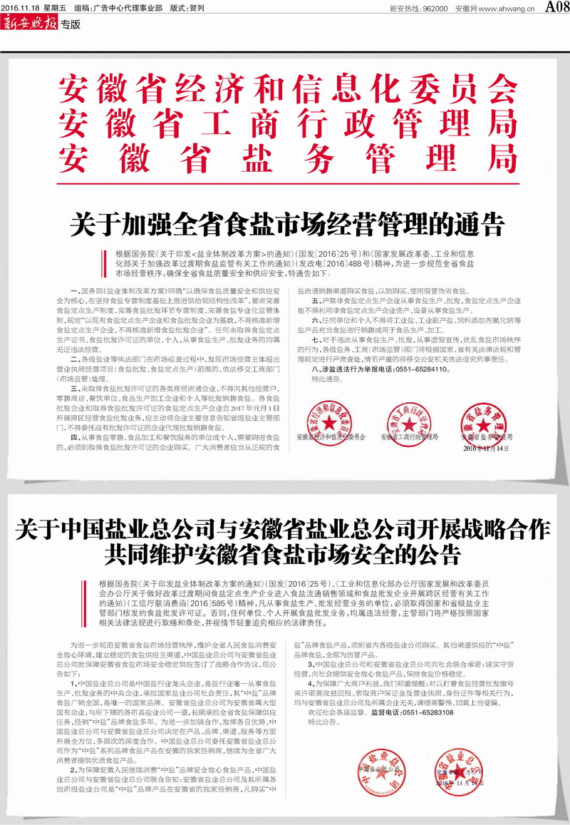 解讀:目前,有少數(shù)制鹽企業(yè)、商貿(mào)企業(yè)及不法商販打著各種旗號,在我省各市縣發(fā)展食鹽批發(fā)代理商,將食鹽委托給沒有食鹽批發(fā)資質(zhì)的企業(yè)或個體經(jīng)營戶代理銷售,這種行為沒有法律依據(jù),不符合現(xiàn)行鹽業(yè)法規(guī)和國家鹽業(yè)改革政策,有的借機(jī)收取保證金等,已經(jīng)涉嫌虛假宣傳等違法行為。我省各級鹽務(wù)、工商、市場監(jiān)管等部門對各類擾亂食鹽市場秩序的行為將依法嚴(yán)厲查處,廣大經(jīng)營戶和消費(fèi)者應(yīng)該到正規(guī)渠道購買食鹽,避免上當(dāng)受騙。