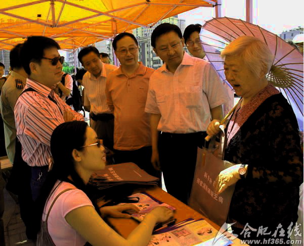 上圖為合肥市民正在向執法人員咨詢如何安全用鹽的常識問題