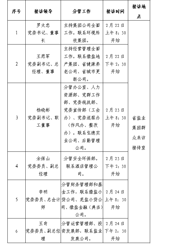 三、省鹽業(yè)集團(tuán)領(lǐng)導(dǎo)接訪安排