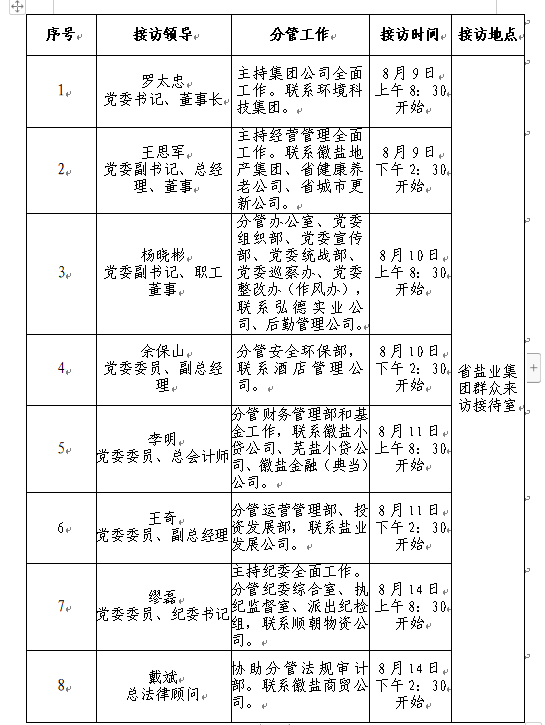 三、省鹽業(yè)集團(tuán)領(lǐng)導(dǎo)接訪安排