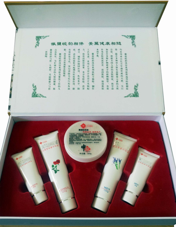 “徽鹽皖韻”系列產(chǎn)品是針對不同人群皮膚特征,采用正交設(shè)計法設(shè)計實驗配方,充分發(fā)揮鹽、營養(yǎng)成分、輔料的協(xié)同作用,經(jīng)過有關(guān)人員試用,達到了預(yù)期效果。