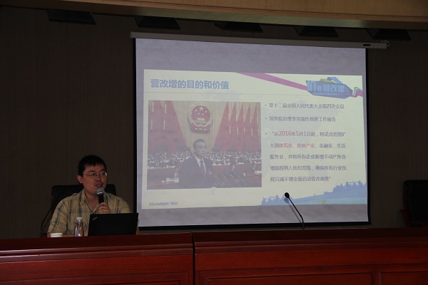5月20日下午,徽鹽地產在安徽鹽業大廈23樓會議室舉辦主題為“營改增”專題知識培訓,來自徽鹽地產公司總部、所屬各子公司的45名領導和職工參加了培訓。