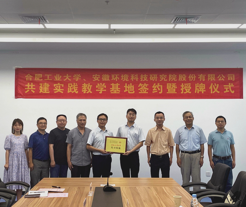 8月4日,合肥工業大學與安徽環境科技研究院股份有限公司共建實踐教學基地簽約暨授牌儀式在安徽環境科技大廈隆重舉行。合肥工業大學本科生院實踐教學科科長張進軍、機械工程學院教學副院長祖磊一行參加簽約儀式并就有關事項開展調研交流。