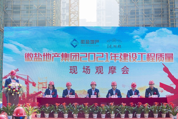 10月29日,徽鹽地產(chǎn)集團(tuán)公司在六安徽鹽龍湖郡項(xiàng)目舉行2021年建設(shè)工程質(zhì)量現(xiàn)場(chǎng)觀摩會(huì),通過(guò)觀精品、樹(shù)標(biāo)桿、強(qiáng)交流,促進(jìn)徽鹽地產(chǎn)工程質(zhì)量整體提升。徽鹽地產(chǎn)集團(tuán)公司領(lǐng)導(dǎo)班子、集團(tuán)本部中層負(fù)責(zé)人、各項(xiàng)目公司負(fù)責(zé)人、工程部門(mén)負(fù)責(zé)人,在建項(xiàng)目總包單位、監(jiān)理單位負(fù)責(zé)人,業(yè)主代表共200余人參加活動(dòng)。