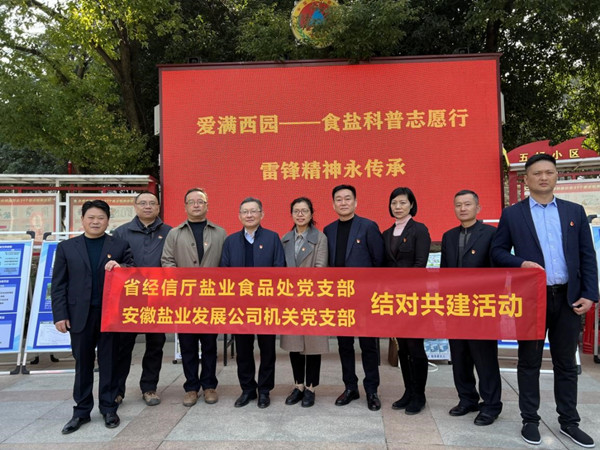 為貫徹落實習(xí)近平總書記對深入開展學(xué)雷鋒活動作出的重要指示精神,3月5日上午,省經(jīng)信廳鹽業(yè)食品處黨支部與鹽業(yè)發(fā)展公司機關(guān)黨支部組建了學(xué)雷鋒志愿服務(wù)隊,與合肥市鹽業(yè)公司共同深入社區(qū)開展“食鹽科普志愿行,雷鋒精神永傳承”主題志愿服務(wù)活動。