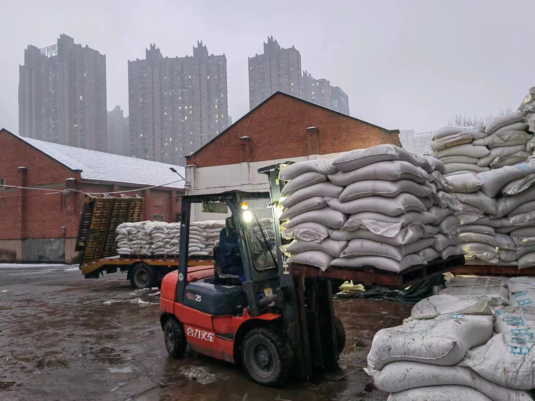 公司領導班子親赴倉儲配送一線指揮調度,全市一市五縣鹽業干部職工眾志成城抗冰雪,頂著風雪嚴寒,冒著雨雪和刺骨的寒風奮戰在保供一線。截至2月4日下午,合肥鹽業共出動配送車輛200臺次、配送人員100余人次、累計發出融雪鹽1500余噸,為清除全市各大公共交通道路積雪提供了有力保障。同時,將倉庫內過期及破損小包裝鹽品拆袋裝換,為此次保供任務轉化融雪鹽品近20噸。4日晚上11點臨時接到市政部門緊急用鹽,公司搬運人員在已連續作戰48小時的情況下,仍第一時間從家中趕至公司,奮戰在融雪鹽保供一線。